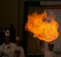 Auweia, der OP ist noch gar nicht vorbereitet. Am Besten desinfizieren die Schwestern schnell den Boden, die Luft und das Arbeitsmaterial. Am saubersten wird es bestimmt, wenn sie die Bakterien mit Feuer abtöten. |