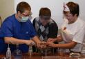 Weiße Blutkörperchen, Jannik stellt die Lösung hin und Laura löst die Blutkörperchen auf |